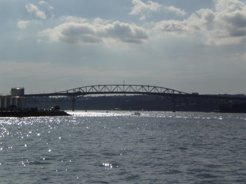 港から見えた橋。空港からこれを渡ってきたらしい(バスの中で寝てたのでわかりません)。 |