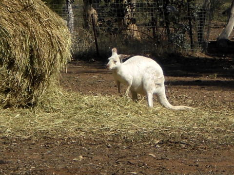白いカンガルーがいました。野生ではないですがなんで?? |
