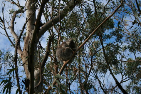 野生のコアラがいました。普通に木にいました。でもヤツラはちっとも動きません。山火事があると一帯のコアラは逃げ遅れて死んでしまうそうです。 |