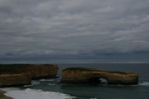 1990年1月にもうひとつのアーチがくずれ、写真のような1つのアーチになってしまいましたが、以前は本当にロンドンブリッジのようだったらしいです。 |