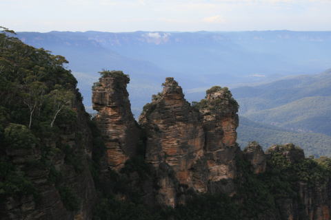 アボリジニのあいだで悲しい伝説が残っているこの3つの削り取られた岩。実際には水による侵食だそうです。 |
