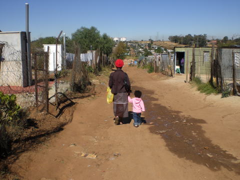 南アフリカ最大のタウンシップ(旧黒人居住区)ソウェトにて撮影した母子。 |