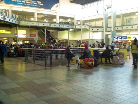 バスターミナル内部。ほぼ黒人しかいなかったので、どうやっても目立ってしまう。 |