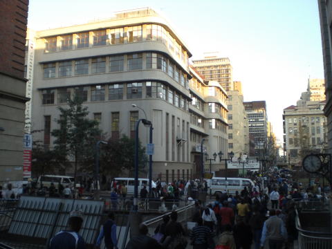 ヨハネスの中で最も危険と言われるバスターミナル近辺。外に出て撮影してみましたが、外へ出るだけで鳥肌が立ちました。 |