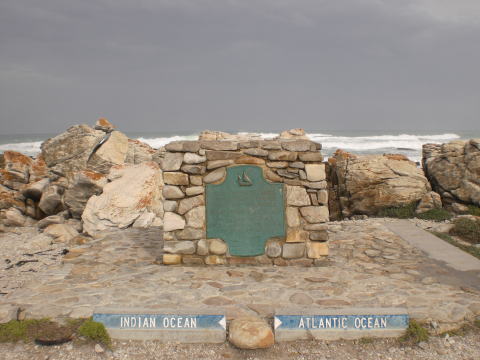 知名度こそ喜望峰に負けますが、こちらがアフリカ大陸最南端。喜望峰より達成感あったケープアグラス。左がインド洋、右が大西洋。 |
