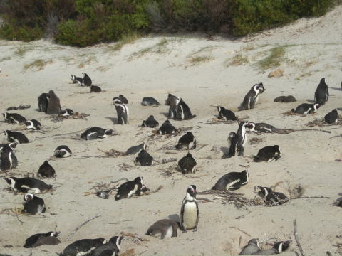 ボルダーズビーチには数え切れないほどのペンギン。この時期は繁殖期のため、親子をたくさん見ました。 |