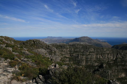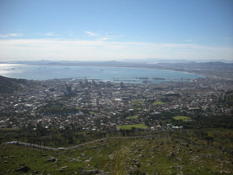 テーブルマウンテンから見たケープタウン。途中、道間違えて登るのに2時間半くらいかかっちゃいました。 |