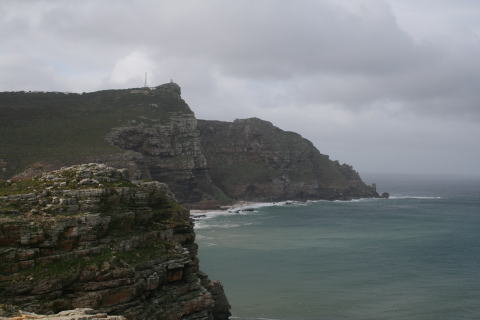 喜望峰から見たケープポイント。曇り空が残念でした。 |