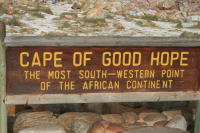 Cape Point から見た喜望峰。世界で最も美しいケープと言われているとか。上の写真のちっこいまめみたいなのがオレ。登ってみました。 |