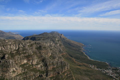 5月のケープタウンはほとんどが曇りか雨。オレたちが滞在した7泊中唯一晴れ渡った日のテーブルマウンテン。ほとんどの日が雲と霧でどこにあるのかもわからなかったけど、この日になってようやく姿が見えました。