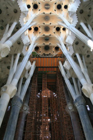 ガウディが建設に半生を費やしたサグラダ・ファミリア聖堂。今も建設中です。完成時には170mの高さになる。 |