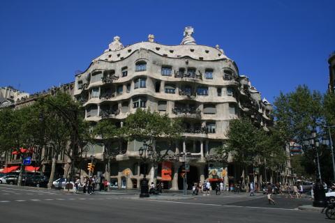 ガウディ作カサ・ミラ、徹底的に直線を排除した建物。