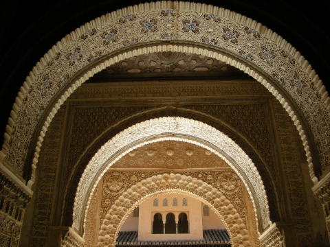細かな装飾が施されたアルハンブラ宮殿。 |