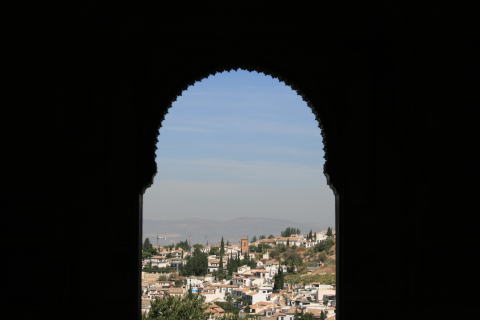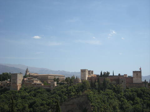 宮殿を一望できるアルバイシンの丘から眺めるアルハンブラ宮殿。 |