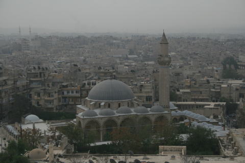 アレッポ城からの眺め。城の内部にはモスクや宮殿があります。 |
