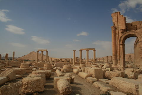 世界でも有数の巨大な規模を誇るパルミラ遺跡。2世紀に栄華を極めたシルクロードの隊商都市。