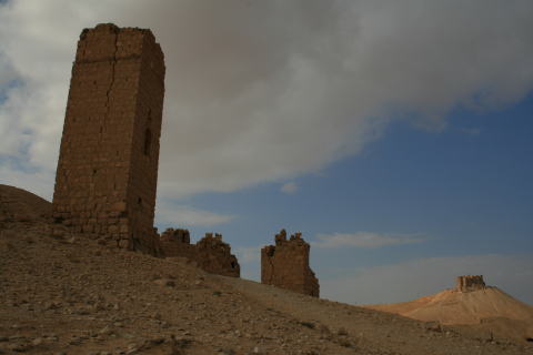 墓の谷。崩れた塔(墓)がたくさんありました。 |