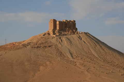 アラブ城。砂漠の丘の上に忽然と建っています。 |
