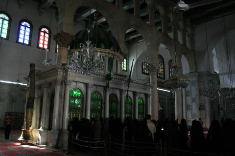 イスラム第4の聖地ウマイヤド・モスク。洗礼者ヨハネ教会を改築して建てられた。内部(下の写真)にはヨハネの首が納められているといわれている。なぜかムスリムは号泣しながら訪れている人が多かったです。