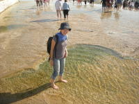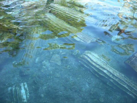 古代プール。水温も高く泳ぐこともできます。遺跡がしずんだまま。パムッカレとはトルコ語で「綿の城」の意。 |