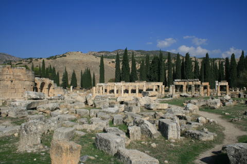 パムッカレにはヒエラポリスという遺跡があり、広大な敷地内に多くの破片を見ることができます。紀元前2世紀ごろに建設が始まった古代ローマ帝国の都市。