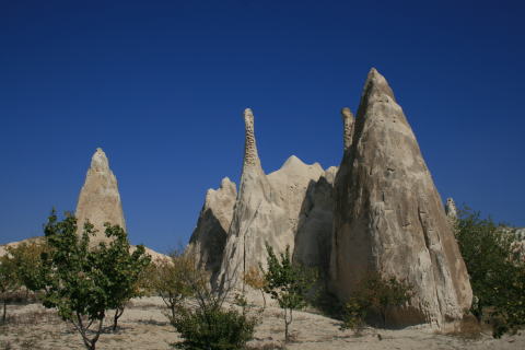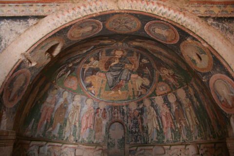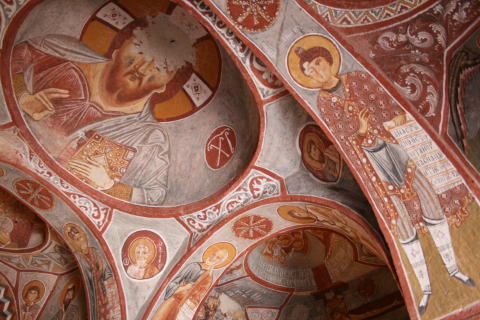 奇岩洞窟にいくつか教会がありました。フレスコ画も残っていて、保存状態もかなりいいものもあります。 |