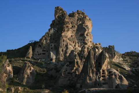 城。洞窟を利用し、城や家があり、現在はホテルもたくさんあるため洞窟の中に泊まれます。