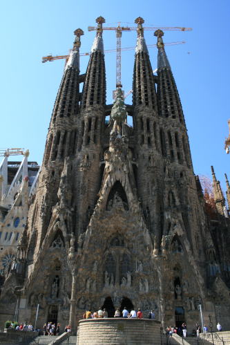 ご存じガウディが半生を捧げた聖堂。現在も工事中です。外観は他の聖堂とは一味違ってオリジナリティが出てます。内部は工事中であまり・・・。普通修復工事をしているとがっかりしますが、ここは工事が似合う聖堂。完成が待ち遠しい。 |
