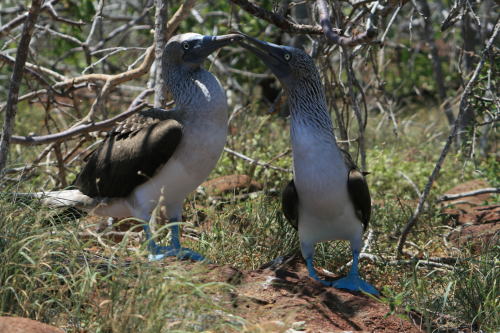 目の覚めるような青い足をしているアオアシカツオドリ。その足で陸をひょこひょこ歩く姿がかわいい!
