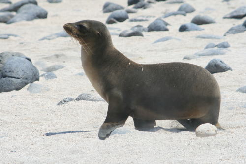 どこの島にもたくさんいるアシカ。人をあまり恐れないため、かなり近づけます。泳いでいると遊びに来てくれます。かわいい! |