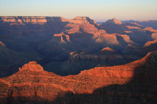 すさまじい大きさを誇るグランドキャニオン。夕日の美しさはさすがです。ベタな観光地ですが、やはりすげぇモノはすげぇ。 |