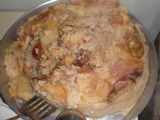 サーメルさんの手料理をいただきました。いろいろあったサーメルさんの過去を思いながら、腹一杯いただいた料理は格別でした。鶏肉やらなんやらで米を炊きあげたもの。 |